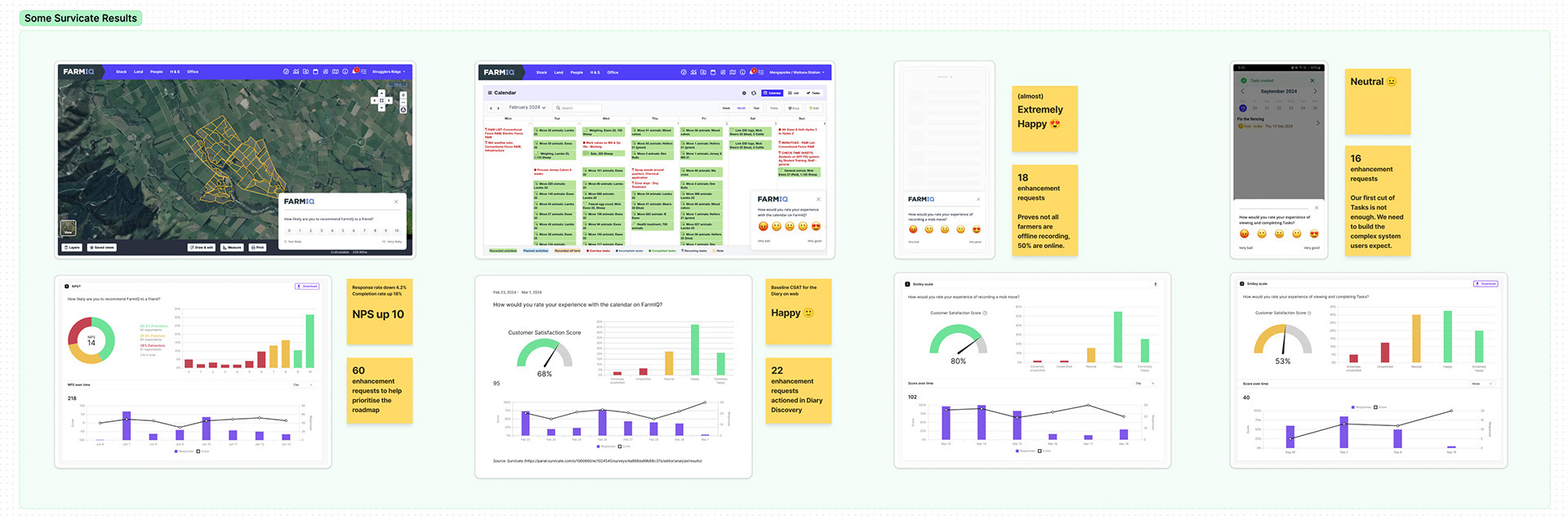 To learn quickly from all roles (including hard‑to‑reach workers), I introduced in‑product surveys across web and mobile. We saw 75–80% completion on targeted pulses, and ~80% CSAT for mobile recording flows; insights fed straight back into iteration and prioritisation. This qualitative insight, alongside our quantitative analytics, helped us measure the success of released solutions and prioritise building on them when needed.