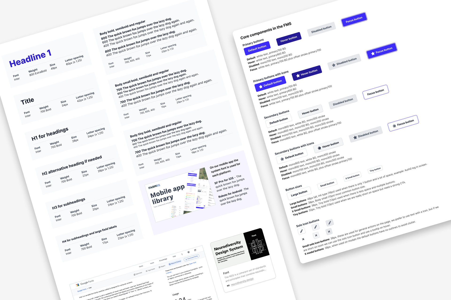The Core Library is a great resource for product designers. It contains various styles and components, along with comprehensive documentation that provides guidance, and instructions on usage and placement. I created a Product Design Confluence space to document important decisions and historical information allowing anyone at FarmIQ to access and understand what's happening in the Design Space.